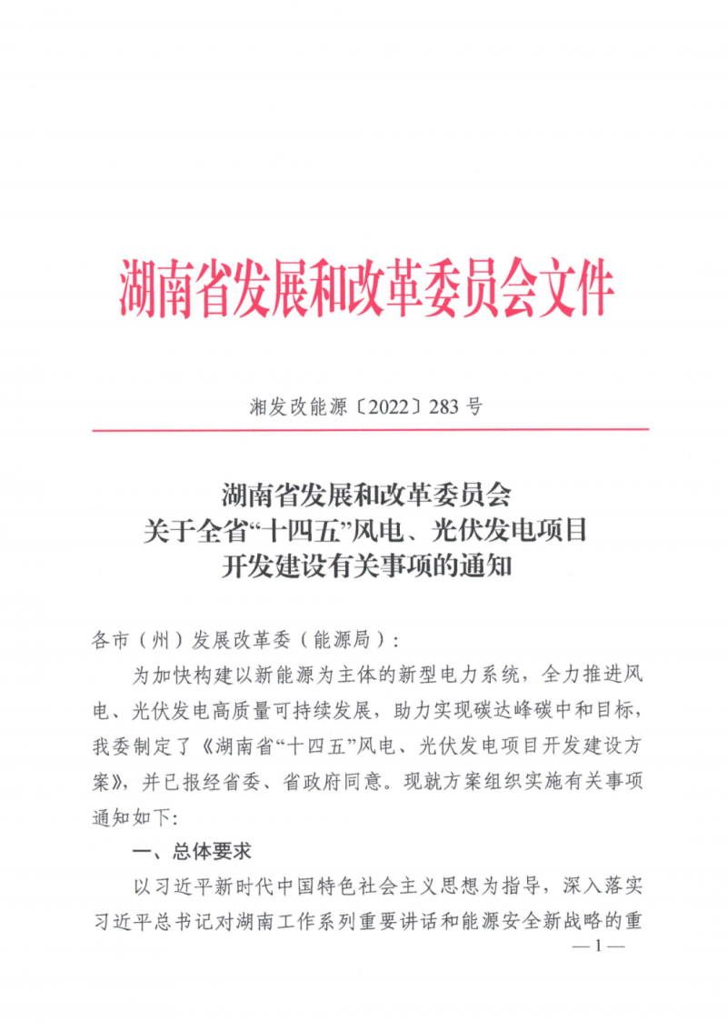 4月14日,湖南發(fā)改委印發(fā)《關于全省“十四五”風電、光伏發(fā)電項目開發(fā)建設有關事項的通知》,力爭做到在“十四五”期間具備開發(fā)建設條件的風電、集中式光伏發(fā)電項目應開盡開。