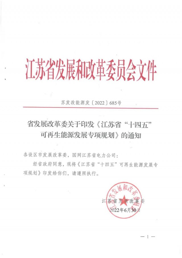 近日,江蘇省發(fā)改委印發(fā)《江蘇省“十四五”可再生能源發(fā)展專項規(guī)劃》,進一步擴大可再生能源應用規(guī)模,著力提升可再生能源 電力在全社會用電量中的比重。規(guī)劃提出主要目標: