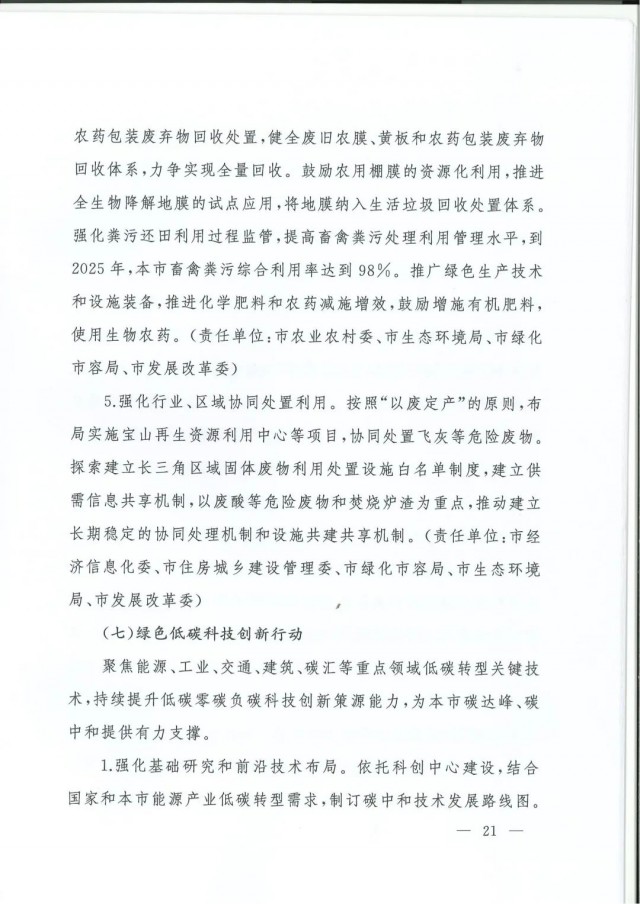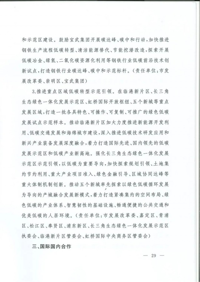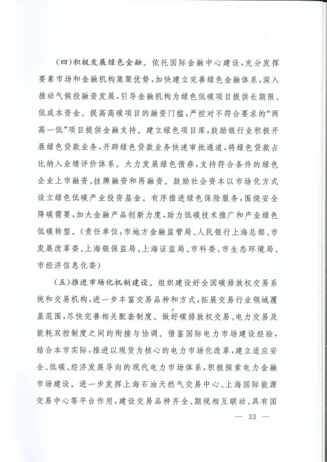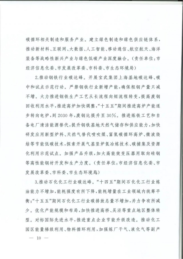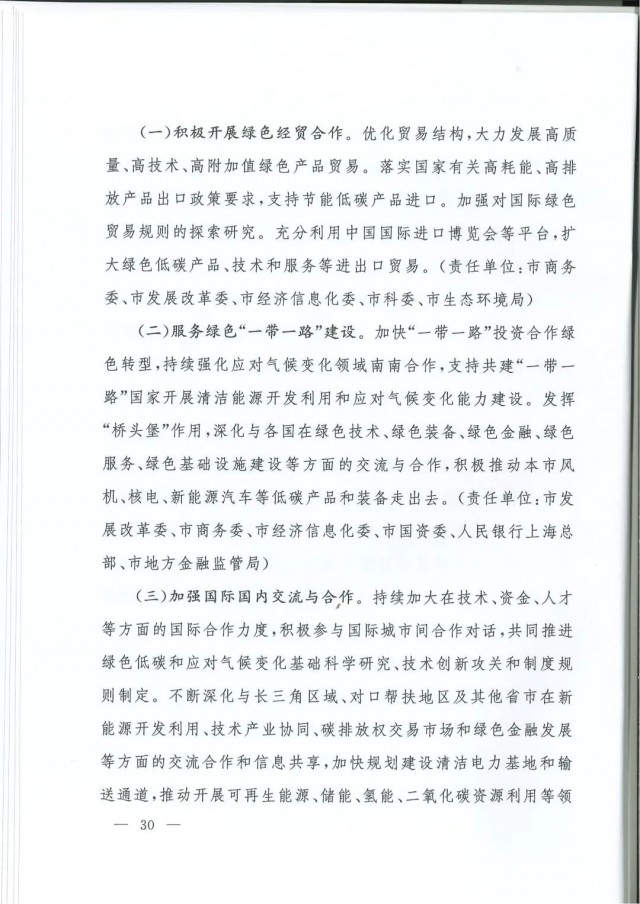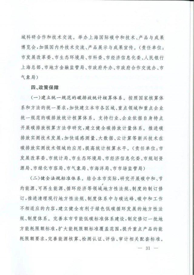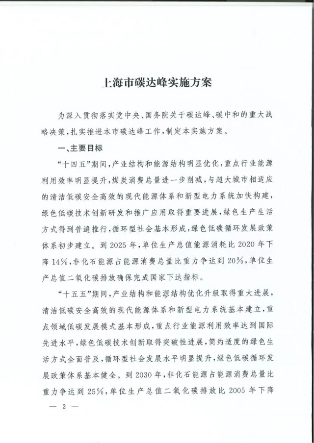 近日,上海市人民政府辦公廳印發(fā)了《上海市碳達峰實施方案》?!斗桨浮访鞔_主要目標:到2025年,單位生產總值二氧化碳排放確保完成國家下達指標。到2030年單位生產總值二氧化碳排放比2005年下降70%,確保2030年前實現(xiàn)碳達峰。并計劃組織實施“碳達峰十大行動”,包括能源綠色低碳轉型行動、節(jié)能降碳增效行動、工業(yè)/城鄉(xiāng)建設/交通領域綠色低碳行動、循環(huán)經濟助力降碳行動、綠色低碳科技創(chuàng)新行動、碳匯能力鞏固提升行動、綠色低碳全民行動、綠色低碳區(qū)域行動。