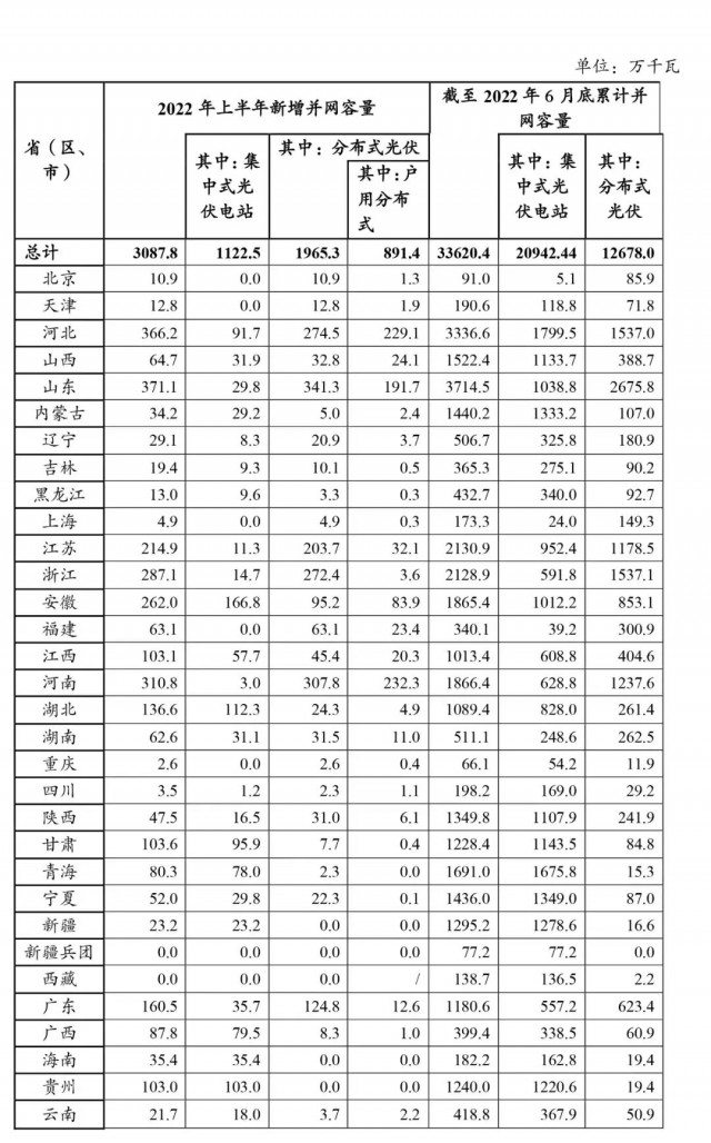 2022年上半年光伏發(fā)電建設運行情況