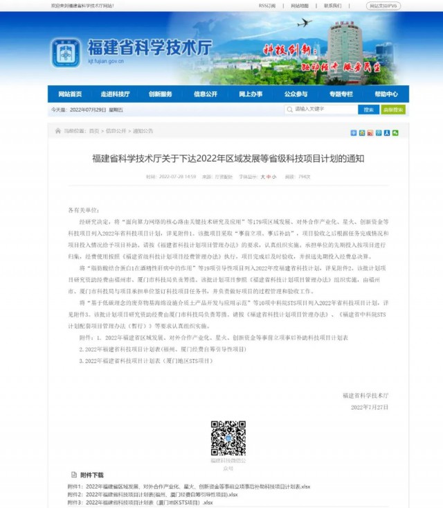 福建省科技廳官網(wǎng)及名單截圖
