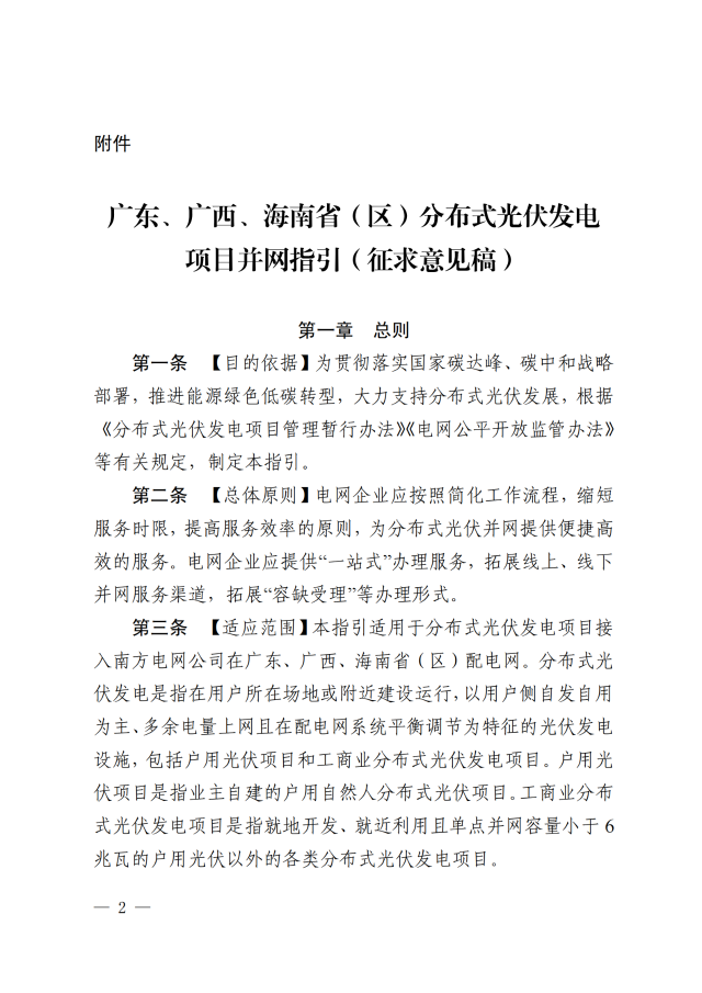 8月3日,國家能源局南方監(jiān)管局印發(fā)了關(guān)于公開征求《廣東、廣西、海南省(區(qū))分布式光伏發(fā)電項目并網(wǎng)指引(征求意見稿)》意見的通告。意見稿中對接入南方電網(wǎng)公司廣東、廣西、海南省(區(qū))配電網(wǎng)的分布式光伏發(fā)電項目進(jìn)行了并網(wǎng)指引。