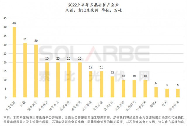 ●為填補供應缺口,2022年上半年,有不少于19家企業(yè)發(fā)布硅料擴產(chǎn)計劃,擴產(chǎn)總量達458萬噸(多晶硅269萬噸,工業(yè)硅189萬噸),投資金額超1620億,擴產(chǎn)多集中在新疆、內(nèi)蒙古、寧夏、四川等地。