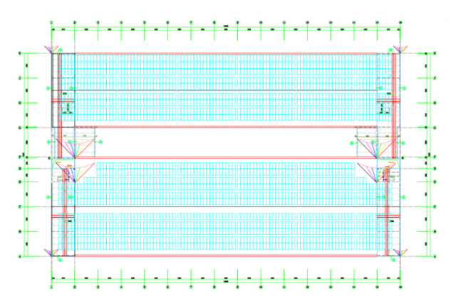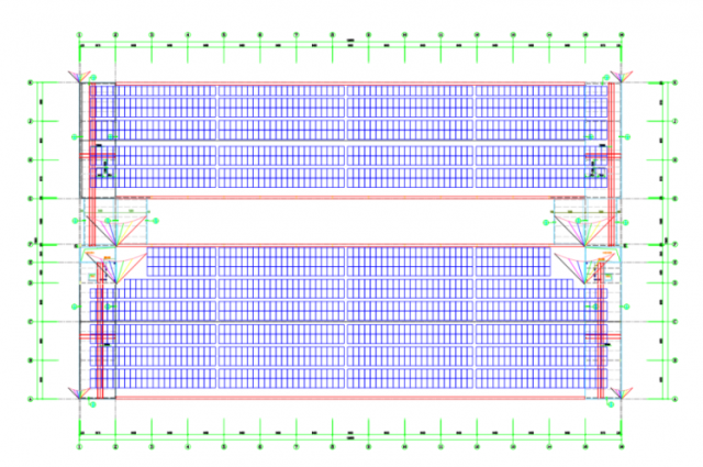采用如上兩種規(guī)格的組件在彩鋼瓦屋頂上采用順屋面平鋪(考慮冬至日上午9點至下午3點無遮擋)的排布圖如下所示: