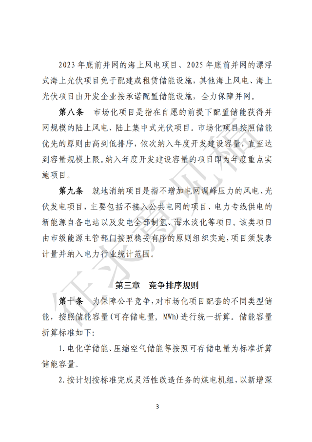 市場(chǎng)化項(xiàng)目按照儲(chǔ)能優(yōu)先的原則由高到低排序,依次納入年度開(kāi)發(fā)建設(shè)容量,直至達(dá)到容量規(guī)模上限。納入年度開(kāi)發(fā)建設(shè)容量的項(xiàng)目即為年度重點(diǎn)實(shí)施項(xiàng)目。