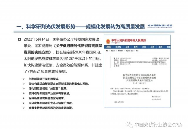2022年7月21日,由中國(guó)光伏行業(yè)協(xié)會(huì)主辦的“光伏行業(yè)2022年上半年發(fā)展回顧與下半年形勢(shì)展望研討會(huì)”通過(guò)網(wǎng)絡(luò)直播形式順利召開(kāi)。水電水利規(guī)劃設(shè)計(jì)總院新能源部副主任王躍峰作光伏發(fā)電特性和消納利用模式研究報(bào)告。王主任表示,站在當(dāng)前現(xiàn)在新能源發(fā)展的關(guān)鍵節(jié)點(diǎn),必須科學(xué)研判光伏的發(fā)展形勢(shì),正確認(rèn)識(shí)光伏的發(fā)電特性,才能更高效提升光伏發(fā)電利用水平。