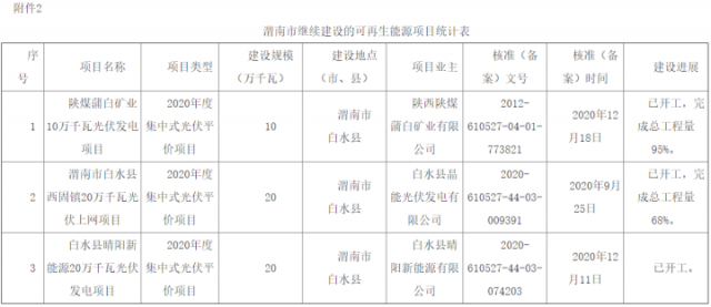 2.渭南市繼續(xù)建設(shè)的可再生能源項(xiàng)目統(tǒng)計(jì)表