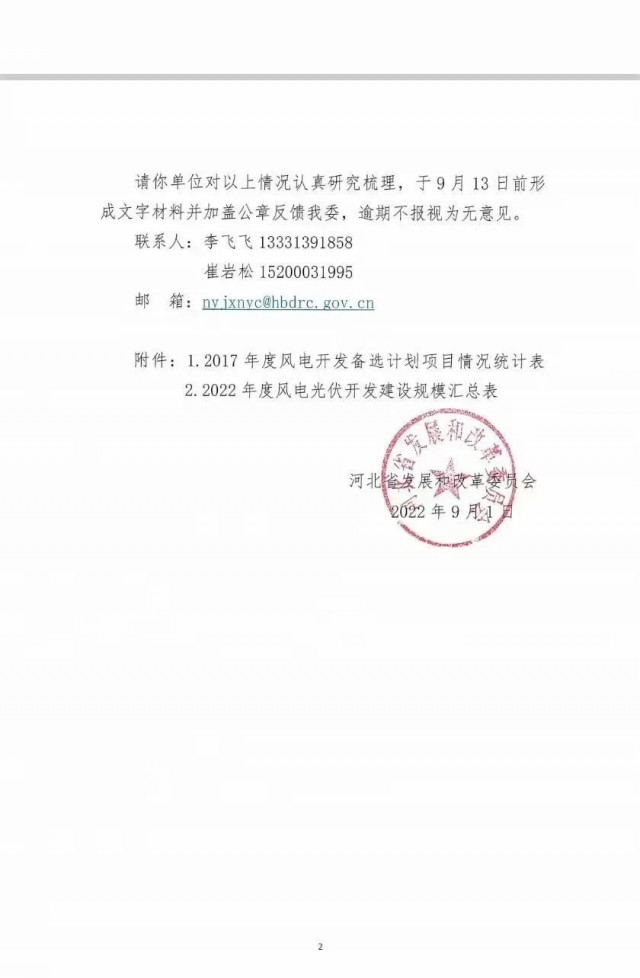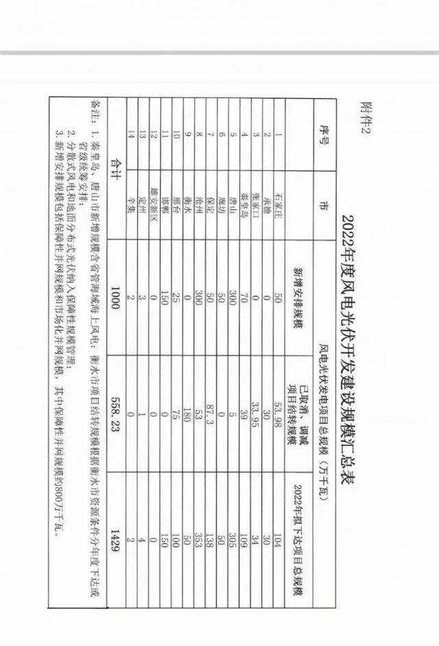 9月1日,河北省發(fā)改委發(fā)布了《關于征求風電光伏項目開發(fā)建設意見建議的函》,并公示了 2022年度風電、光伏開發(fā)建設規(guī)模匯總表。