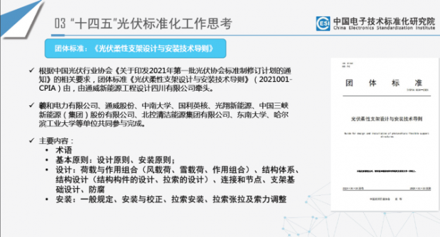 ●二是加快重點領(lǐng)域標(biāo)準(zhǔn)制定,關(guān)鍵基礎(chǔ)性IEC標(biāo)準(zhǔn)加快轉(zhuǎn)化,新技術(shù)、新應(yīng)用、跨領(lǐng)域融合等前沿性標(biāo)準(zhǔn)研制,如光伏+儲能、光電建筑、智能光伏等新興的跨領(lǐng)域融合標(biāo)準(zhǔn)研制,以高質(zhì)量的標(biāo)準(zhǔn)引領(lǐng)產(chǎn)業(yè)高質(zhì)量發(fā)展。