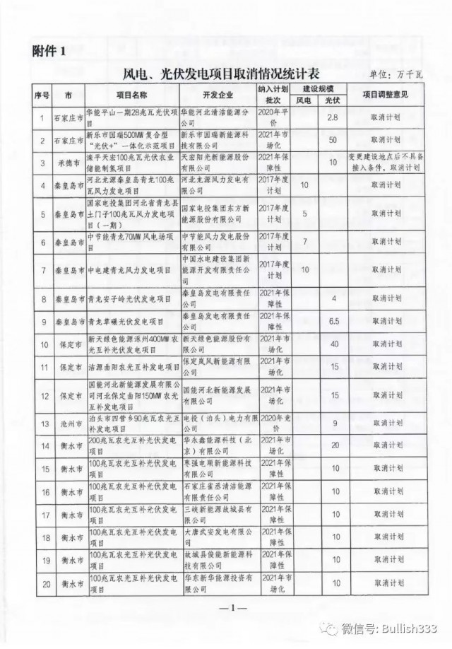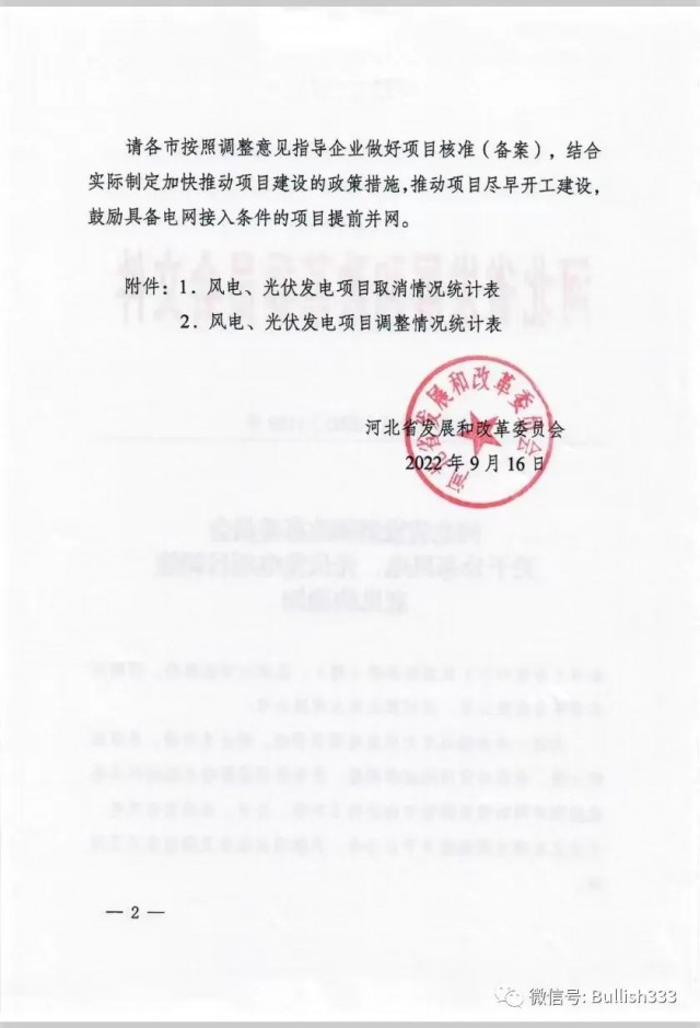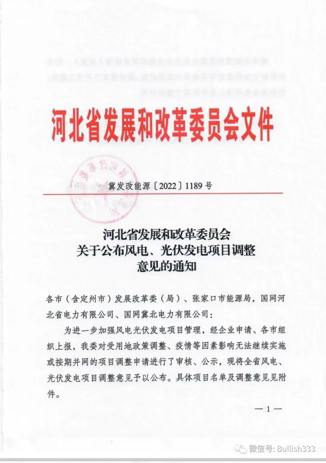 9月16日,河北發(fā)改委正式印發(fā)《關(guān)于公布風(fēng)電、光伏發(fā)電項(xiàng)目調(diào)整意見的通知》,對(duì)受用地政策調(diào)整、疫情等因素影響無法繼續(xù)實(shí)施或按期并網(wǎng)的項(xiàng)目進(jìn)行了調(diào)整。