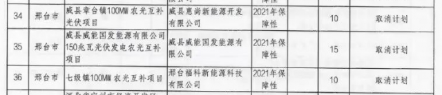 根據(jù)文件來看,相比此前發(fā)布的《風(fēng)電、光伏發(fā)電項(xiàng)目擬調(diào)整情況公示》來看,光伏新增取消三個(gè)2021年光伏保障性項(xiàng)目指標(biāo),規(guī)??傆?jì)為350MW,風(fēng)電則未發(fā)生變化。需要注意的是,三個(gè)光伏項(xiàng)目均為農(nóng)光互補(bǔ)類項(xiàng)目,其業(yè)主分別為惠尚新能源開發(fā)、威縣威能國發(fā)能源以及中國電建。