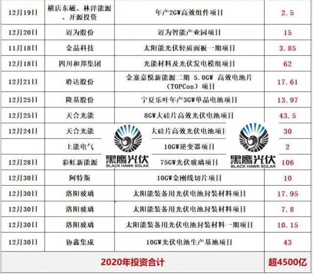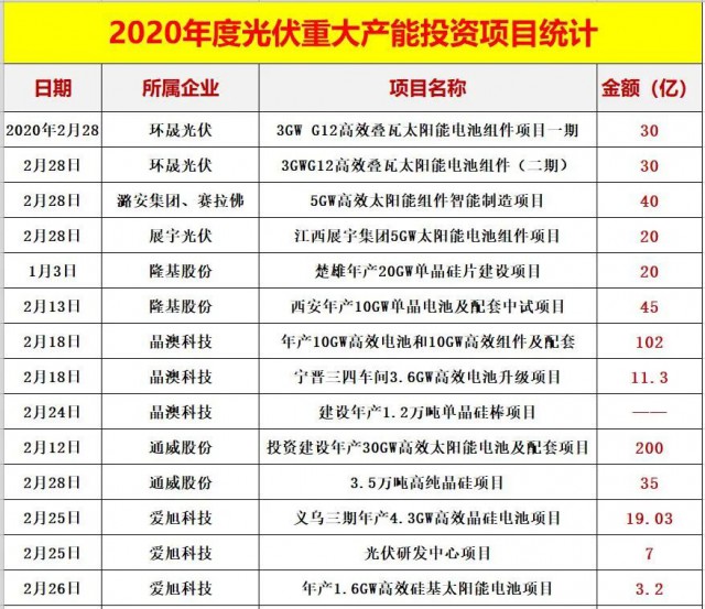 四.2020光伏新項(xiàng)目投資超4000億!單個項(xiàng)目投資額在10億元以上的就多達(dá)82個,50億元以上的有22個。
