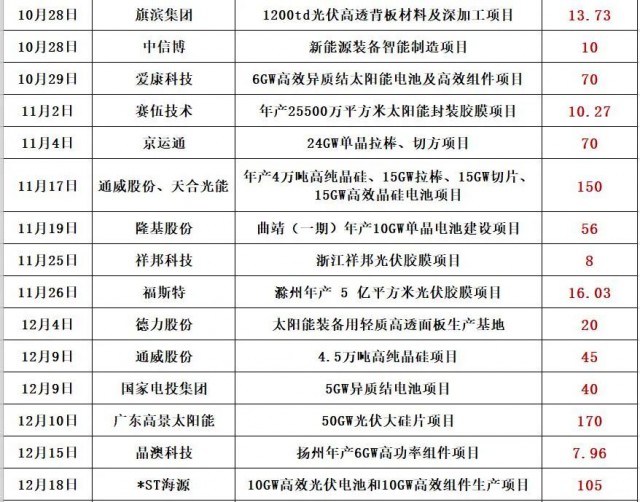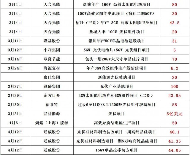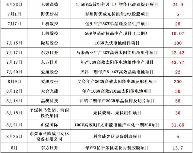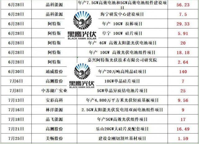 最新的消息是,通威股份擬在鹽城市投資25GW高效光伏組件項(xiàng)目,預(yù)計(jì)固定資產(chǎn)投資約40億元。同期消息,天合光能擬投資60億,在淮安簽約15GW電池片和15GW組件項(xiàng)目!