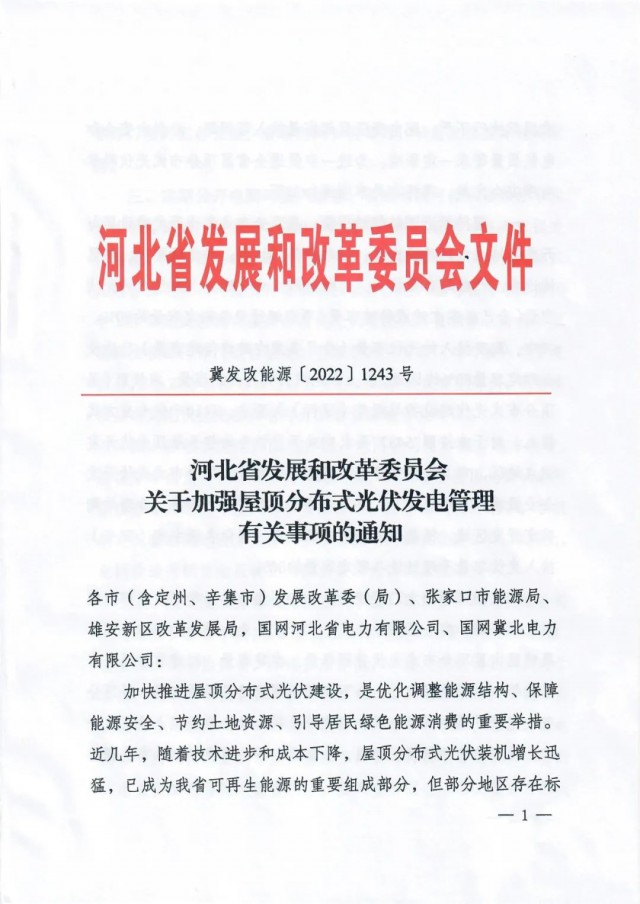 9月27日,河北省發(fā)改委發(fā)布《關(guān)于加強(qiáng)屋頂分布式光伏發(fā)電管理有關(guān)事項(xiàng)的通知》,通知指出,部分地區(qū)存在標(biāo)準(zhǔn)規(guī)范執(zhí)行不嚴(yán)、配電變壓器超容量接入等問(wèn)題,給供電安全和電能質(zhì)量帶來(lái)一定影響。為進(jìn)一步促進(jìn)全省屋頂分布式光伏科學(xué)有序安全發(fā)展,通知提出: