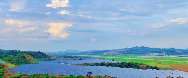 梧州西江機(jī)場(chǎng)光伏發(fā)電項(xiàng)目位于廣西梧州西江機(jī)場(chǎng)跑道旁,占地面積1000余畝,裝機(jī)總量為50兆瓦,為目前國(guó)內(nèi)最大的機(jī)場(chǎng)集中式光伏電站。西江機(jī)場(chǎng)光伏項(xiàng)目于今年2月開(kāi)工建設(shè),7月31日完成全容量并網(wǎng)發(fā)電。項(xiàng)目建成后,年均發(fā)電量可達(dá)5558萬(wàn)千瓦時(shí),每年可節(jié)約標(biāo)煤約1.7萬(wàn)噸,減排二氧化碳約4.8萬(wàn)噸。項(xiàng)目方還會(huì)向當(dāng)?shù)厝罕娭Ц锻恋亓鬓D(zhuǎn)租金,后期的運(yùn)營(yíng)和發(fā)展,也將帶動(dòng)地方群眾致富,預(yù)計(jì)每年可為地方增加稅收100余萬(wàn)元。