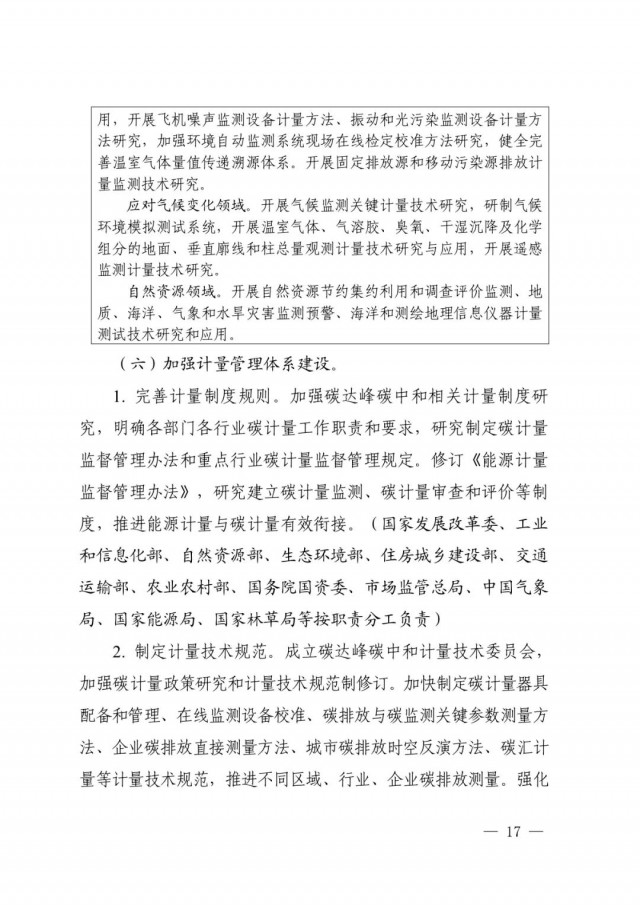 作為碳達(dá)峰碳中和“1+N”政策體系中重要文件之一,提出了完善碳排放基礎(chǔ)通用標(biāo)準(zhǔn)體系、加強(qiáng)重點(diǎn)領(lǐng)域碳減排標(biāo)準(zhǔn)體系建設(shè)、加快布局碳清除標(biāo)準(zhǔn)體系、健全市場化機(jī)制標(biāo)準(zhǔn)體系、完善計(jì)量技術(shù)體系、加強(qiáng)計(jì)量管理體系建設(shè)、健全計(jì)量服務(wù)體系7個方面的24項(xiàng)重點(diǎn)任務(wù),明確了實(shí)施碳計(jì)量科技創(chuàng)新工程、碳計(jì)量基礎(chǔ)能力提升工程、碳計(jì)量標(biāo)桿引領(lǐng)工程、碳計(jì)量精準(zhǔn)服務(wù)工程、碳計(jì)量國際交流合作工程5項(xiàng)重點(diǎn)工程,開展雙碳標(biāo)準(zhǔn)強(qiáng)基行動、百項(xiàng)節(jié)能降碳標(biāo)準(zhǔn)提升行動、低碳前沿技術(shù)標(biāo)準(zhǔn)引領(lǐng)行動、綠色低碳標(biāo)準(zhǔn)國際合作行動4項(xiàng)重點(diǎn)行動,并對協(xié)調(diào)推動各項(xiàng)工作落實(shí)提出相應(yīng)要求。