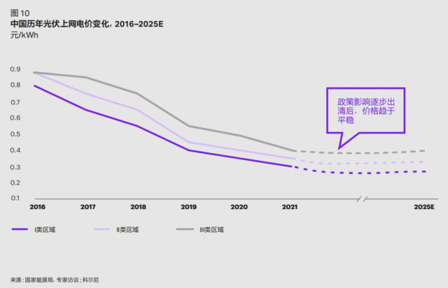 光伏電站的內(nèi)部收益率主要受上網(wǎng)電價、投資/發(fā)電成本直接影響,科爾尼預(yù)計,未來上網(wǎng)電價會逐漸形成穩(wěn)定的市場定價機制,但長期投資發(fā)電成本的下降將會顯著提升分布式光伏的收益。