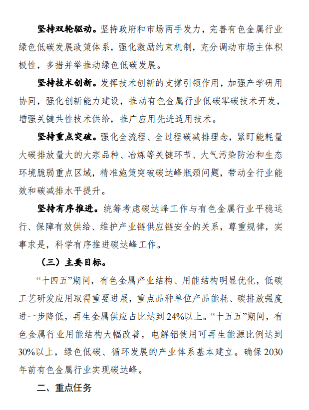 11月15日,工業(yè)和信息化部、國(guó)家發(fā)展和改革委員會(huì)和生態(tài)環(huán)境部發(fā)布《關(guān)于印發(fā)有色金屬行業(yè)碳達(dá)峰實(shí)施方案的通知》,(以下簡(jiǎn)稱通知)通知指出,控制化石能源消費(fèi)。推進(jìn)有色金屬行業(yè)燃煤窯爐以電代煤,提升用能電氣化水平。在氣源有保障、氣價(jià)可承受的條件下有序推進(jìn)以氣代煤。推動(dòng)落后自備燃煤機(jī)組淘汰關(guān)?;虿捎们鍧嵢剂咸娲?yán)禁在國(guó)家政策允許的領(lǐng)域以外新(擴(kuò))建燃煤自備電廠,推動(dòng)電解鋁行業(yè)從使用自備電向網(wǎng)電轉(zhuǎn)化。支持企業(yè)參與光伏、風(fēng)電等可再生能源和氫能、儲(chǔ)能系統(tǒng)開發(fā)建設(shè)。加強(qiáng)企業(yè)節(jié)能管理,嚴(yán)格落實(shí)國(guó)家強(qiáng)制性節(jié)能標(biāo)準(zhǔn),持續(xù)開展工業(yè)節(jié)能監(jiān)察,規(guī)范企業(yè)用能行為。