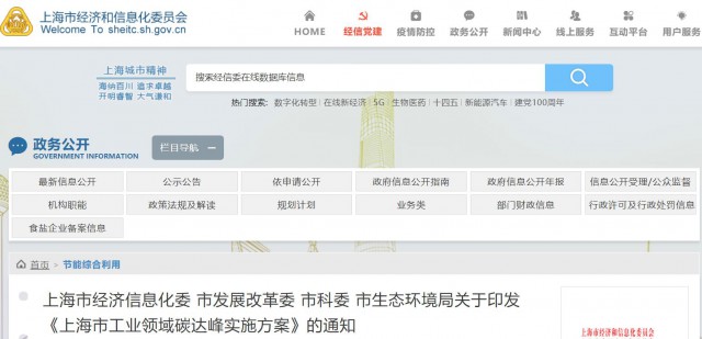 上海市工業(yè)領(lǐng)域碳達(dá)峰實施方案