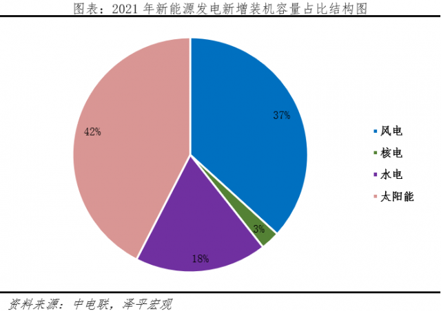 光伏是新能源發(fā)電端建設(shè)的核心領(lǐng)域之一,中電聯(lián)數(shù)據(jù)顯示,2021年我國(guó)太陽(yáng)能新增裝機(jī)容量為54930兆瓦,同比增長(zhǎng)14.0%,占新能源發(fā)電新增裝機(jī)總?cè)萘康?2%。