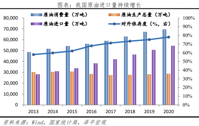 二是對(duì)國(guó)家能源安全的保障。在交通運(yùn)輸領(lǐng)域,我國(guó)石油消費(fèi)量正不斷走高,從2015年的5.43億噸/年上升至2020年的7.36億噸/年。然而我國(guó)原油產(chǎn)量則一直維持在2億噸/年。供需矛盾致使我國(guó)的原油進(jìn)口量持續(xù)增長(zhǎng),對(duì)外依存度超過(guò)70%。為保證國(guó)家的能源安全和經(jīng)濟(jì)的可持續(xù)發(fā)展,能源消費(fèi)結(jié)構(gòu)亟需升級(jí)。而發(fā)展新能源發(fā)電有利于減少我國(guó)對(duì)能源進(jìn)口的依賴,保障國(guó)家能源安全。