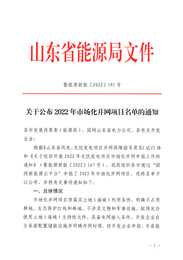 12月20日,山東省能源局公布2022年市場(chǎng)化并網(wǎng)光伏發(fā)電項(xiàng)目名單,共有54個(gè)項(xiàng)目入選,合計(jì)裝機(jī)7GW。具體名單如下: