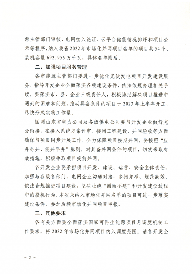山東2022年市場(chǎng)化并網(wǎng)光伏項(xiàng)目名單(54個(gè)、7GW)