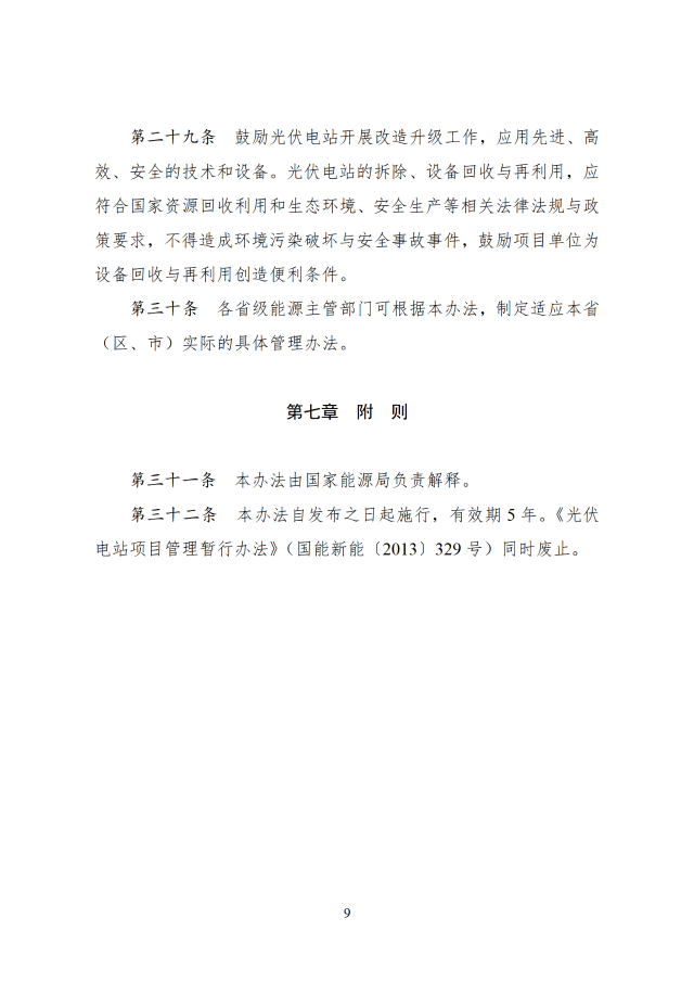 通知表示,本辦法自發(fā)布之日起施行,有效期5年。《光伏電站項(xiàng)目管理暫行辦法》(國(guó)能新能〔2013〕329號(hào))同時(shí)廢止。
