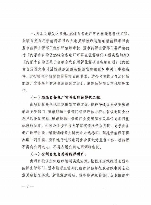 由項目投資主體組織編制實(shí)施方案,按程序逐級報送至盟市能源主管部門,盟市能源主管部門組織評估并征求省級電網(wǎng)企業(yè)意見后批復(fù)實(shí)施。盟市能源主管部門負(fù)責(zé)組織有關(guān)單位對項目整體進(jìn)行驗(yàn)收,電網(wǎng)企業(yè)按申報方案落實(shí)情況予以并網(wǎng)。對于自備電廠調(diào)節(jié)性能、儲能調(diào)峰等關(guān)鍵要求未達(dá)標(biāo)的,配建新能源不得辦理并網(wǎng)手續(xù)。項目運(yùn)行過程電網(wǎng)企業(yè)要做好監(jiān)督工作,新能源不得向公網(wǎng)送電,不得占用公共電網(wǎng)調(diào)峰空間。