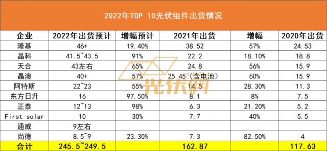 2022年前十大組件企業(yè)出貨數(shù)據(jù):TOP 4均邁入40GW,排名爭奪戰(zhàn)一觸即發(fā)