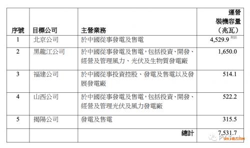 據(jù)悉,目標公司I及目標公司II主要從事清潔能源發(fā)電,主要包括風力發(fā)電及光伏發(fā)電。收購事項涉及收購總?cè)萘繛?,268.3兆瓦(包括已投運7,531.7兆瓦,在建1,736.6兆瓦)的發(fā)電項目。