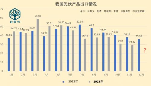 2023年11月份,我國光伏出口實(shí)現(xiàn)29.32億美元,單月同比去年下降23.2%,環(huán)比上月下降5.1%。