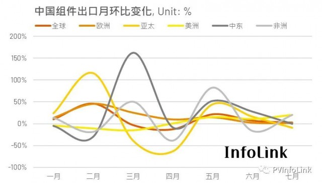 另外,非洲市場七月的中國組件進口量為0.3GW,累計進口量為1.9GW,同比成長分別11%和35%。