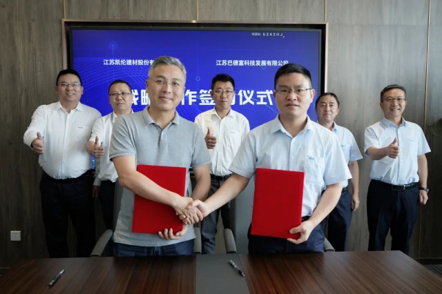 2022年8月5日,江蘇凱倫建材股份有限公司攜手江蘇巴德富科技發(fā)展有限公司建立戰(zhàn)略合作伙伴關(guān)系。雙方在互惠互利的基礎(chǔ)上,統(tǒng)一整合資源優(yōu)勢,結(jié)成共同發(fā)展之聯(lián)盟。