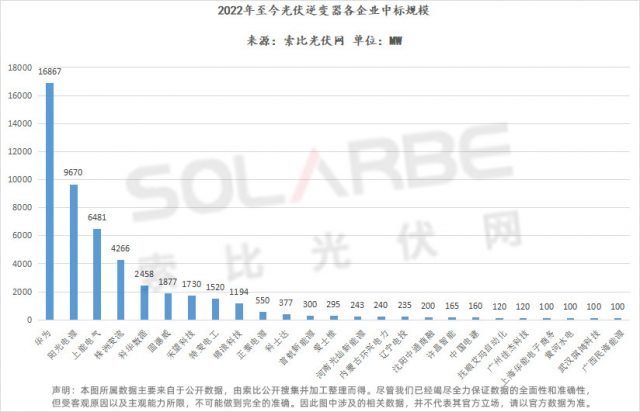 除已經(jīng)公開中標(biāo)規(guī)模的逆變器中標(biāo),還有27.8GW公布了入圍情況,其中陽光電源中標(biāo)15個(gè)標(biāo)段、上能電氣中標(biāo)10個(gè)標(biāo)段、科華數(shù)據(jù)、禾望科技中標(biāo)各9個(gè)、特變電工、錦浪科技各8個(gè)、科士達(dá)、華為各7個(gè)、株洲變流6個(gè)。