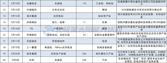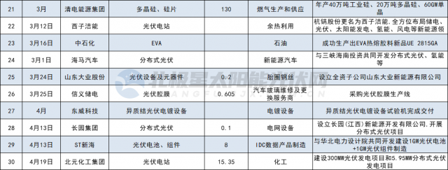其他如多晶硅、硅片制造領(lǐng)域投資共7家,分別為合盛硅業(yè)、吉利、其亞集團(tuán)、清電能源、中啟控股、風(fēng)范股份、華民股份。光伏設(shè)備5家,分別為山東大業(yè)股份、東威科技、拓普集團(tuán)、奧??萍?、金鴻順。光伏膠膜3家,分別為中石化、信義儲(chǔ)電、綠康生化;此外,江蘇陽(yáng)光、寶豐大手筆投資全產(chǎn)業(yè)鏈。