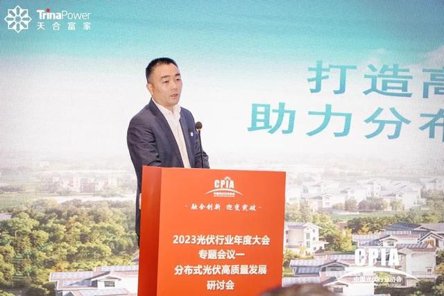 2023年12月14日,為深入探討新形勢(shì)下光伏市場(chǎng)發(fā)展情況、發(fā)展方向與路徑,促進(jìn)行業(yè)交流與溝通,由中國(guó)光伏行業(yè)協(xié)會(huì)與宿遷市人民政府聯(lián)合主辦的“2023光伏行業(yè)年度大會(huì)”在宿遷盛大開(kāi)幕,天合富家能源股份有限公司董事長(zhǎng)高海純應(yīng)邀出席并為分布式光伏高質(zhì)量發(fā)展研討會(huì)致辭。