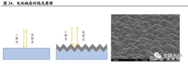由于硅片在切割過程中表面會產(chǎn)生大量的油污,金屬污染和機(jī)械損傷,因此 要對硅片進(jìn)行酸洗(多晶)或者堿洗(單晶),利用各向同行和各向異性原理對 硅片表面進(jìn)行腐蝕,去除硅片表面機(jī)械損傷層;清除表面油污和金屬雜質(zhì),形成 潔凈表面;形成起伏不平的絨面,使入射光在表面進(jìn)行多次反射和折射,延長光 程,減少光學(xué)損失,金剛線切割硅片經(jīng)過清洗制絨后表面反射率可從50%降低至 15%以下。