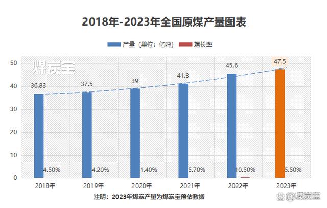 2023年1-4月全國(guó)能源生產(chǎn)情況:全國(guó)生產(chǎn)原煤15.27億噸,同比增長(zhǎng)4.8%,煤炭寶初步預(yù)計(jì)2023年我國(guó)煤炭總產(chǎn)量為47.5億噸左右。