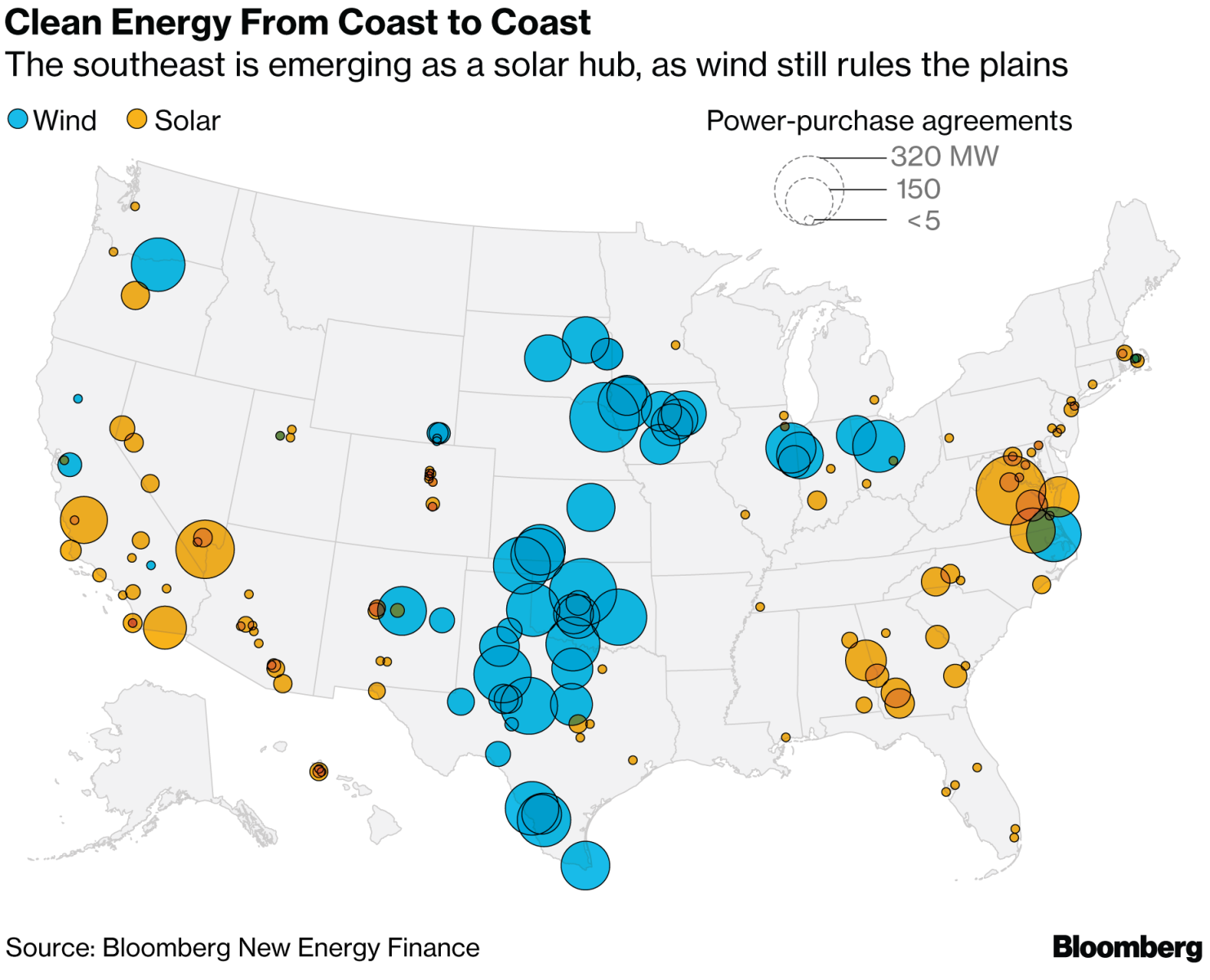 在美國簽署長期合同購買清潔能源的公司一般都在尋找風(fēng)力發(fā)電的中心地帶和沿海國家的太陽能。