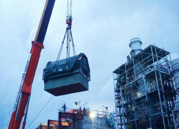 緬甸阿弄燃機(jī)項(xiàng)目汽輪機(jī)發(fā)電機(jī)定子吊裝就位