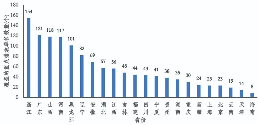 2022年納入全國(guó)碳排放權(quán)交易配額管理的重點(diǎn)排放單位分布情況(部分)