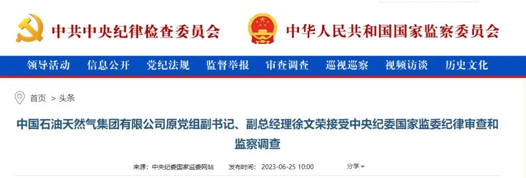中國石油天然氣集團(tuán)原黨組副書記、副總經(jīng)理徐文榮被查