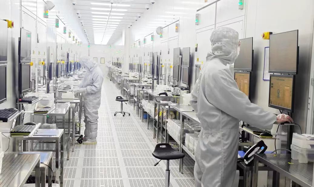 戴好口罩、套上鞋套、穿好潔凈服……走進(jìn)電科芯片超凈車間,操作人員小心翼翼地將待檢測(cè)芯片放置到探針載臺(tái)上,配合電子顯微鏡,進(jìn)行良品率自動(dòng)檢測(cè)。