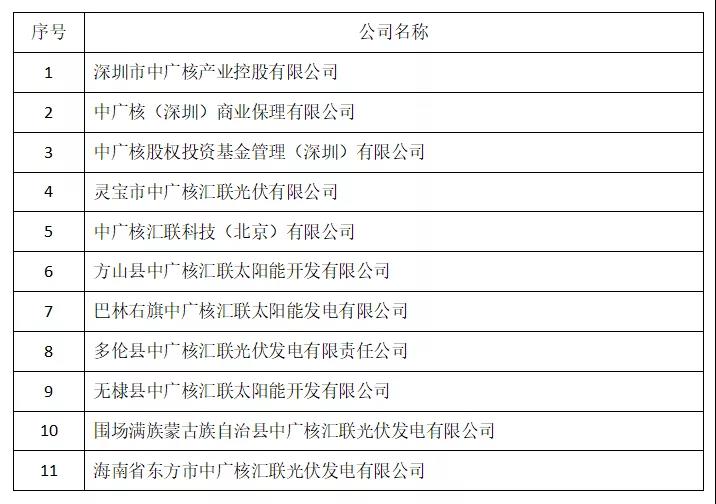 二、經(jīng)檢索查詢發(fā)現(xiàn),目前有深圳市中廣核產(chǎn)業(yè)控股有限公司、中廣核(深圳)商業(yè)保理有限公司等11家公司(附表)冒名使用“中廣核”字號或商標,對我集團品牌造成嚴重侵權。