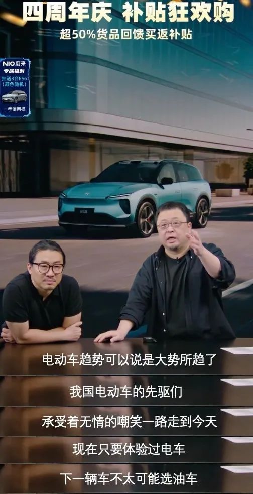 而老羅帶貨蔚來則“廣告”的屬性更為明顯,基本上就相當(dāng)于一場“直播間專屬廣告”。在老羅極具個人特色的介紹下,蔚來在羅永浩的直播間進(jìn)行了一次“科普”。不論效果如何,老羅還是制造了“只要體驗(yàn)過電車,下一輛車就不太可能是油車”這樣頗具傳播效果的金句。