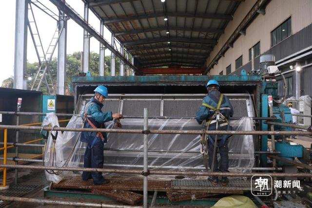 天色已晚,但在浙能嘉興發(fā)電廠里,仍有不少戴著安全帽的人員三三兩兩聚在一起,旋轉(zhuǎn)濾網(wǎng)前的抓海蜇工作仍沒有停止。