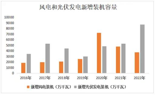 我國(guó)的可再生能源總裝機(jī)量2021年已突破10億千瓦,2022年繼續(xù)保持增長(zhǎng)態(tài)勢(shì),尤其是風(fēng)電和光伏發(fā)電的新增裝機(jī)容量達(dá)到1.25億千瓦,連續(xù)三年突破1億千瓦。其中,光伏發(fā)電成為2022年新能源新增裝機(jī)的主要增量。