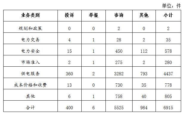電力行業(yè)排在首位,有效信息數(shù)量為6915件、占全部有效信息的82.09%;其中投訴舉報數(shù)量為406件、占全部投訴舉報數(shù)量的97.13%。(2020年10月電力行業(yè)有效信息按業(yè)務(wù)分類情況見表二)