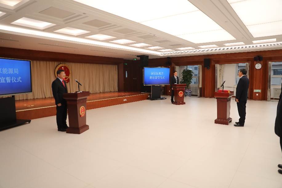 為深入學(xué)習(xí)貫徹習(xí)近平法治思想,國(guó)家能源局于2023年1月12日舉行憲法宣誓儀式,局黨組書(shū)記、局長(zhǎng)章建華監(jiān)誓并講話,局黨組成員、副局長(zhǎng)林山青主持儀式。